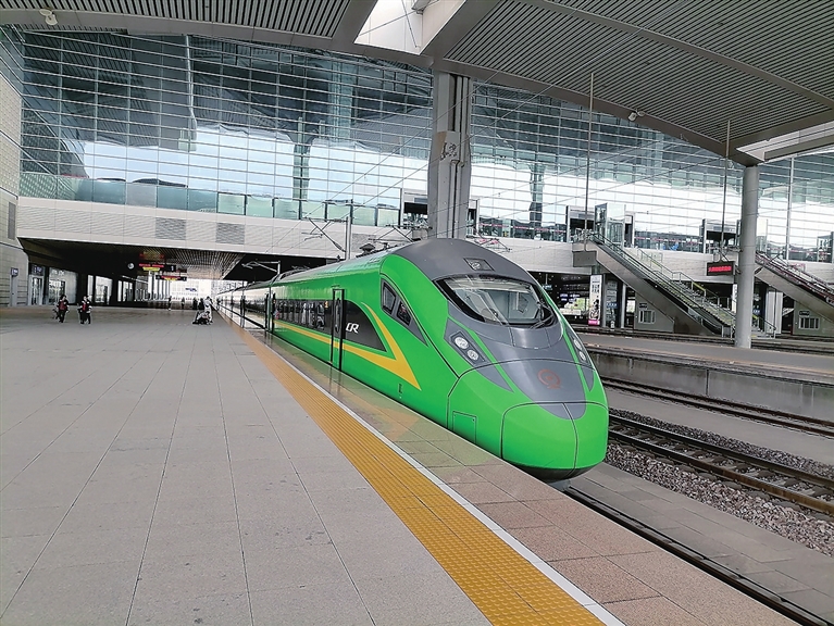 另外,太原至呂梁這條線路采用“綠巨人”動(dòng)車組列車。這一動(dòng)車組的外形和常見的“和諧號(hào)”“復(fù)興號(hào)”高鐵列車相似,同為子彈頭式的流線型車身,顏色亮麗,車身主體為醒目的綠色,配上形如閃電的黃色線條,頗為帥氣,被網(wǎng)友親切地稱為“綠巨人”。