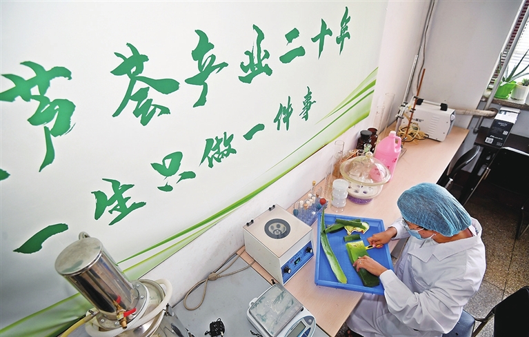 20多年前,王國林接觸到蘆薈的一些產品,查找相關資料,他發現蘆薈有很多藥用價值。“何不將蘆薈的功效加以研究開發,分享給更多人,幫助更多人變得更加健康與美麗。”懷著滿腔的熱情,經過多方考察,2000年,他創建了山西澳意蘆薈生物科技有限公司。