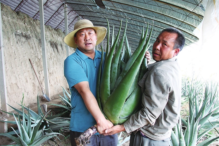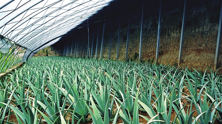為了更好地發展,王國林走訪了全國知名蘆薈產區,2013年春天在西山生態園小臥龍創建蘆薈種植基地,比鄰王封一線天景區和桃花溝景區,平均海拔約1350米,在蘆薈大棚里種植農作物,可控制雨水和日照時間,四季如春。