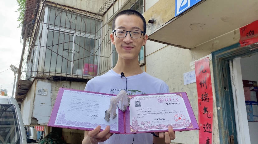 閆潤杰滿懷期待地打開印有清華大學校徽的紫色硬殼通知書,內頁一座手工拼插的立體“清華門”映入眼簾。“錄取通知書設計很有趣,滿滿的儀式感,入學后將繼續努力學習。”他堅定地表示自己對計算機專業很感興趣,希望可以通過努力在這個領域有所造詣,實現自己的人生價值。