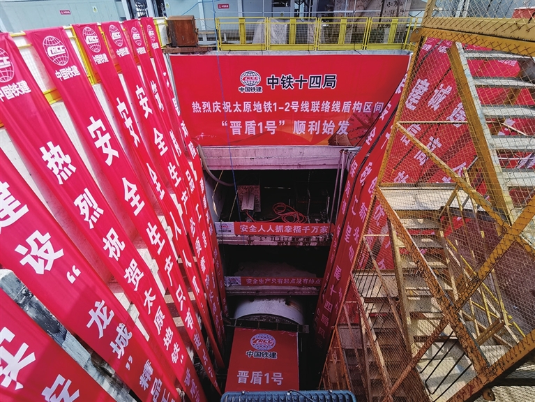 7月16日上午,“晉盾1號”盾構(gòu)機(jī)在大南門站順利始發(fā),標(biāo)志著由中鐵十四局集團(tuán)承建的太原地鐵大南門站1號線與2號線聯(lián)絡(luò)線的盾構(gòu)區(qū)間正式進(jìn)入掘進(jìn)階段。與常規(guī)整體地下盾構(gòu)不同,此次受到始發(fā)場地所限,盾構(gòu)機(jī)“車頭”只能帶著1節(jié)臺車入地作業(yè),其余4節(jié)臺車要在地上“協(xié)同作戰(zhàn)”,這在太原地鐵施工中尚屬首次。