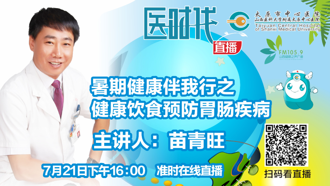 7月21日下午4:00,《醫時代直播》邀請到太原市中心醫院腺體外科主任苗青旺,帶來主題為“暑期健康伴我行之健康飲食,預防胃腸疾病”互動直播。直播聚焦于如何從日常預防腸胃疾病?保護腸胃健康,需要注意些什么?幫助廣大網友在胃腸疾病多發的夏季,科學有效地調整胃腸功能,養成良好的飲食生活習慣,安全健康度過夏季。