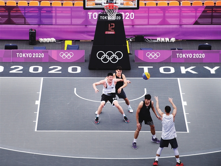 7月21日,烈日下的東京氣溫30多攝氏度,中國三人籃球男、女隊來到青海城市運動公園進行奧運會前的首次踩場訓練。