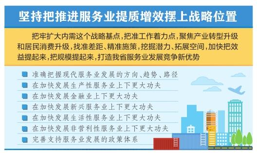 推進服務業(yè)提質增效,是我省主動服務和融入新發(fā)展格局、推動產業(yè)結構轉型升級的重大舉措。林武在講話中深刻闡明了發(fā)展服務業(yè)的重大意義,深入分析了我省服務業(yè)總量規(guī)模、速度效益、行業(yè)結構、問題短板等情況,明確提出了當前和今后一個時期我省服務業(yè)發(fā)展的目標任務。他指出,服務業(yè)占據(jù)經濟總量的“半壁江山”,一頭連著經濟發(fā)展,一頭連著民生福祉,地位舉足輕重。推進服務業(yè)提質增效,既是當前緊迫工作,也是長期戰(zhàn)略任務。各級各部門要把思想和行動統(tǒng)一到黨中央及省委決策部署上來,堅持把推進服務業(yè)提質增效擺上戰(zhàn)略位置,把牢擴大內需這個戰(zhàn)略基點,把準工作著力點,聚焦產業(yè)轉型升級和居民消費升級,找準差距、精準施策,挖掘潛力、拓展空間,加快把效益提起來,把規(guī)模提起來,打造我省服務業(yè)發(fā)展競爭新優(yōu)勢。