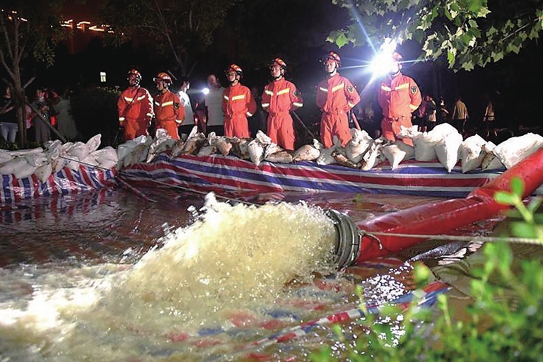7月23日晚7時,山西消防救援隊伍接到命令后,立即派遣救援力量趕赴萬通福瑞城小區(qū),查看地下車庫受災(zāi)情況,與當?shù)厥姓?、街道等部門協(xié)商,制定排澇方案,派遣包括大功率城市排水車在內(nèi)的3車14人連夜排澇作業(yè)。