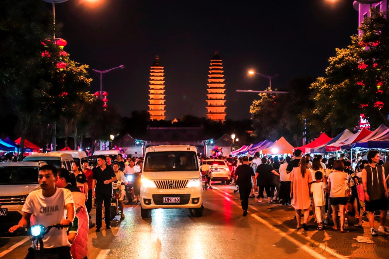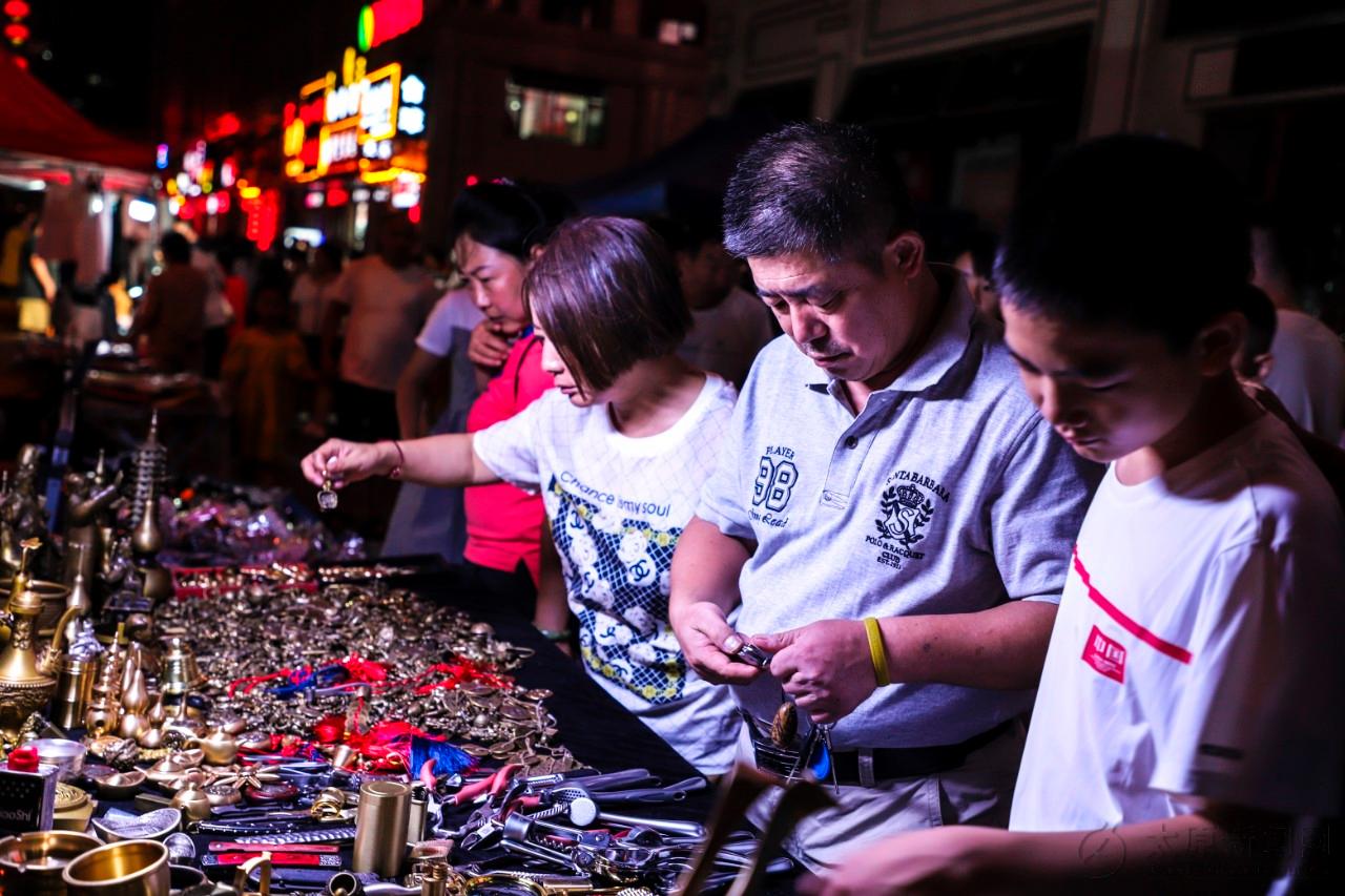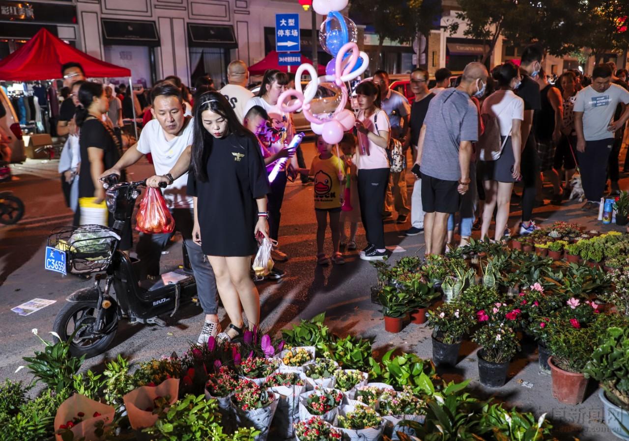 7月29日晚,在第33屆雙塔廟會(huì)上,人們摩肩接踵,一邊前進(jìn),一邊觀看著陳列在攤位上的商品。這次廟會(huì)的商品種類繁多,構(gòu)成了一幅五彩斑斕、充滿民俗與人情的美景。