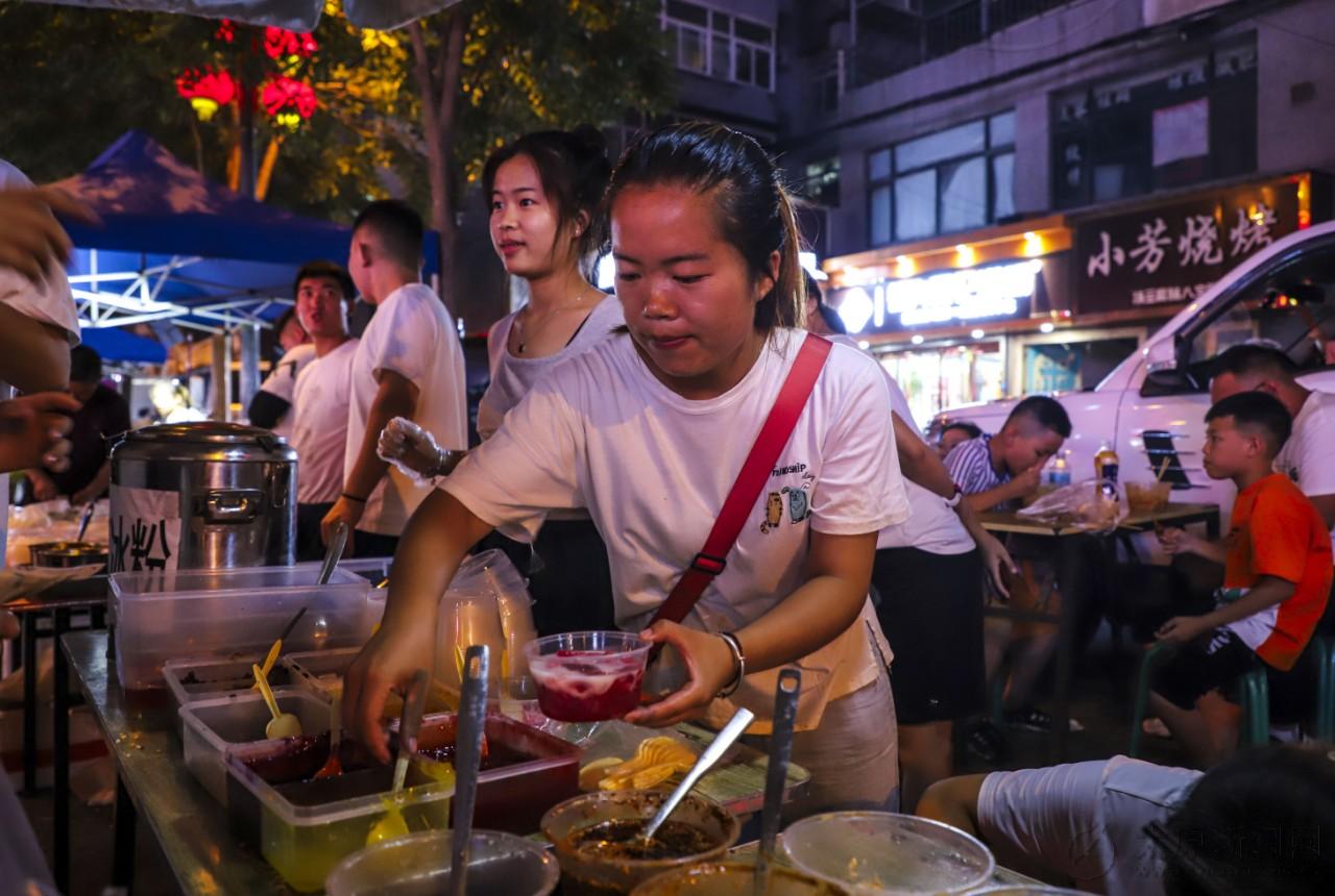 對(duì)于吃貨來說,有散稱的干脆可口的小零食,色彩口感均佳的糖果,香甜美味的板栗。也有插在稻草上的入口即化的棉花糖、酸酸甜甜的糖葫蘆、甜而不膩又十分美觀的傳統(tǒng)糖畫人。更有擺在路邊隨即可吃的粉嫩冰甜的冰粉、韌性十足的涼粉、口感滑嫩的傳統(tǒng)面皮、會(huì)讓味蕾爆炸的燒烤。