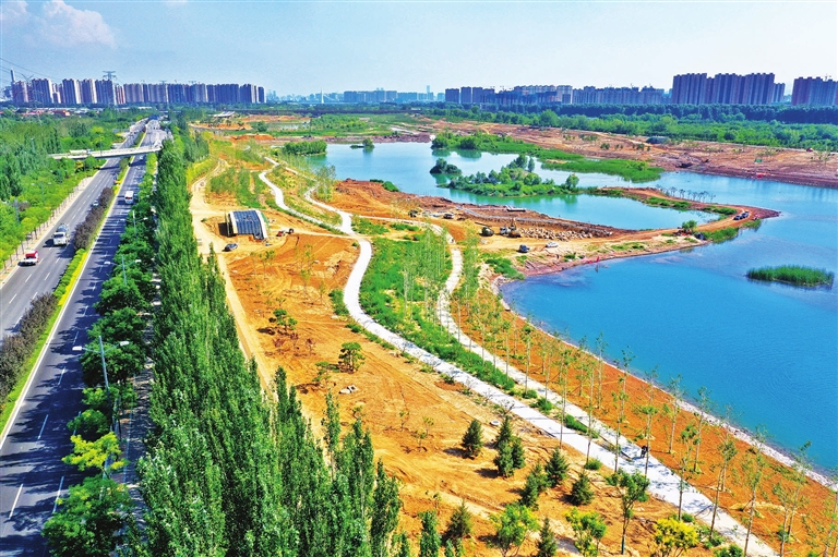 紅綠相間的步道,阡陌縱橫的稻田,赭褐色的農(nóng)耕圖成為晉源區(qū)稻田公園夏日的別樣風(fēng)景。