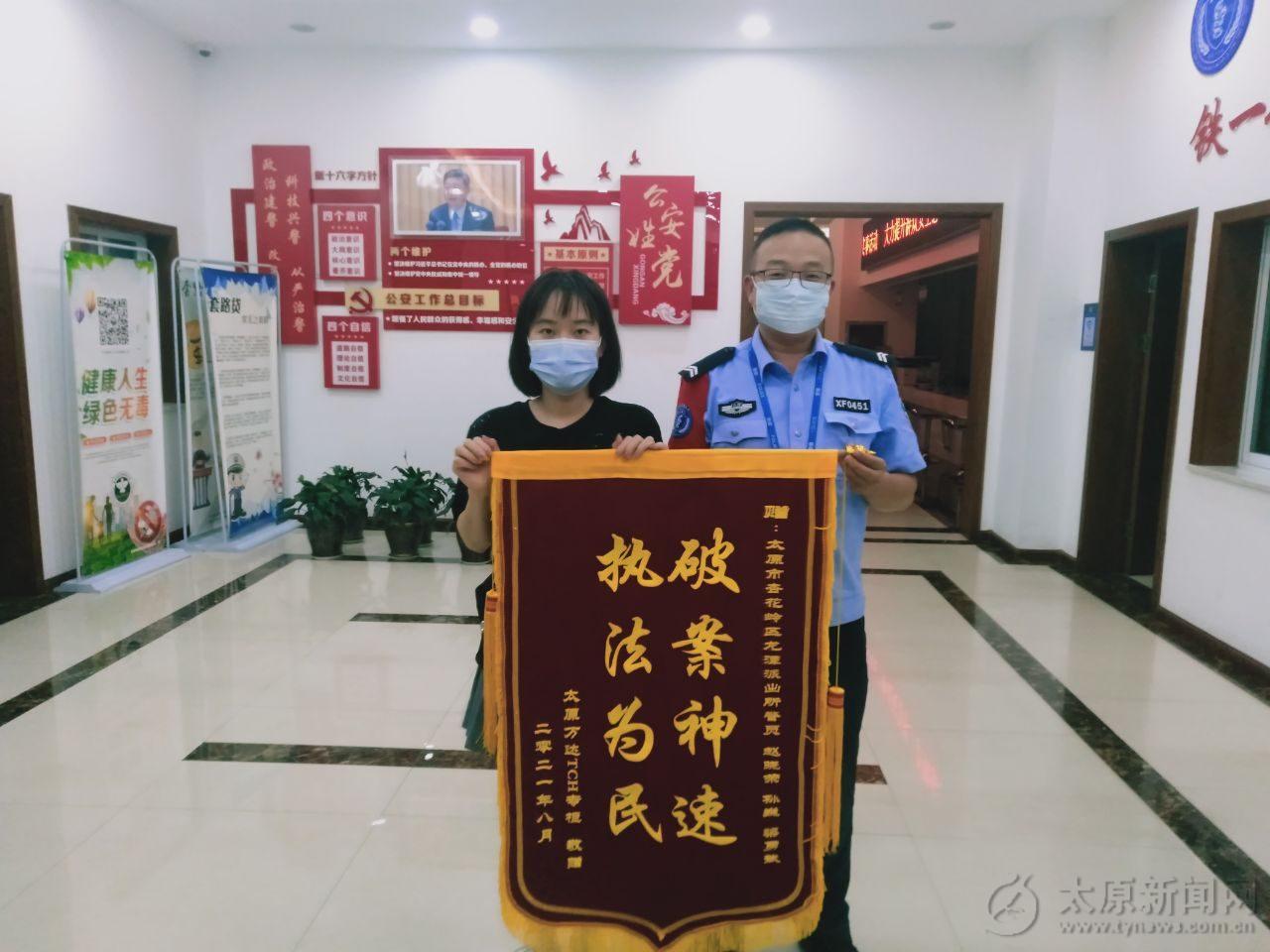 8月9日,杏花嶺分局龍潭派出所收到萬達商場品牌店負責人送來的一面寫著“破案神速執法為民”的錦旗。