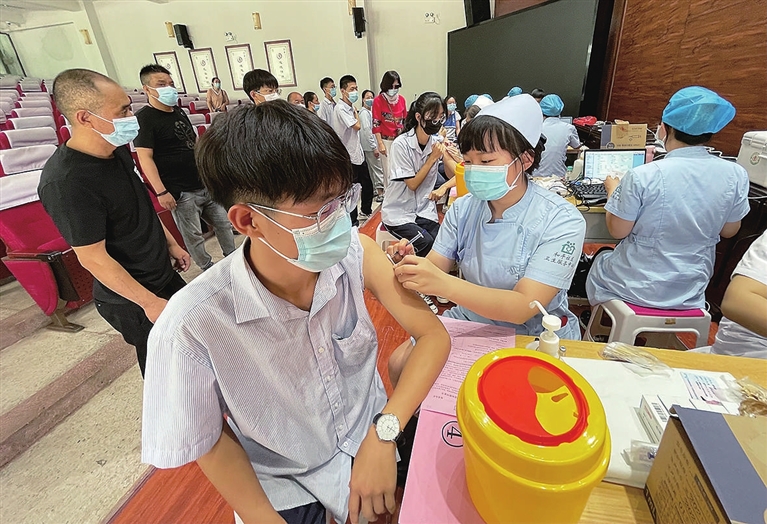 8月9日,太原市第二實(shí)驗(yàn)中學(xué)內(nèi),學(xué)生正有序接種新冠病毒疫苗。當(dāng)日,該校組織15至17歲學(xué)生接種疫苗,進(jìn)一步織密校園疫情防控“安全網(wǎng)”。