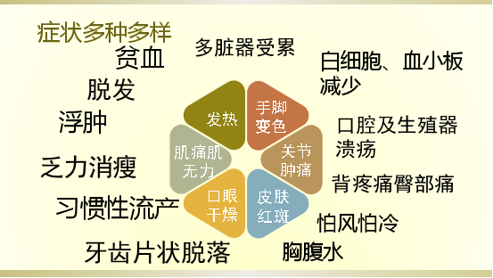 科室對系統性結締組織病有積極療效,如:系統性紅斑狼瘡、干燥綜合征等采用抑制和支持相結合的治療方式,真正做到了病情扭轉快、身體恢復快、治療成本低、藥物副作用小。