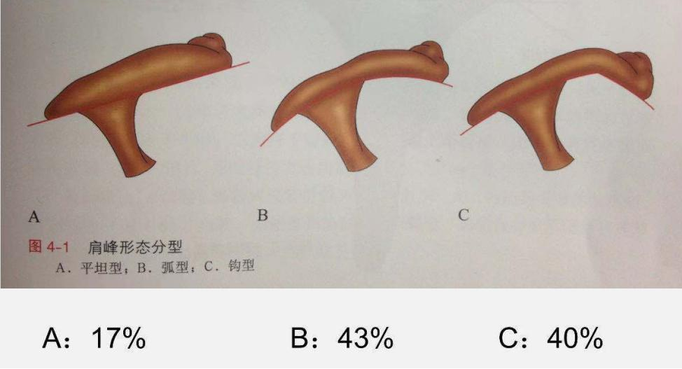 3.肩部慢性撞擊性損傷,上圖中B、C型肩峰極易導致肩袖撞擊性損傷;