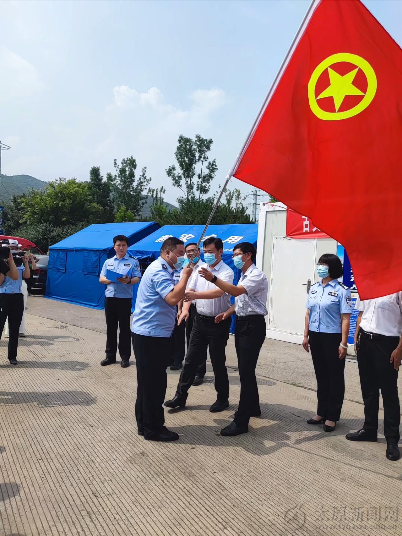 8月13日,古交團市委在疫情防控高速卡點成立臨時團支部。一支高舉著鮮紅團旗的青年隊伍,出現在古交市疫情防控高速卡點,他們認真細致地進行現場秩序維護、體溫測量、信息收集等服務工作。