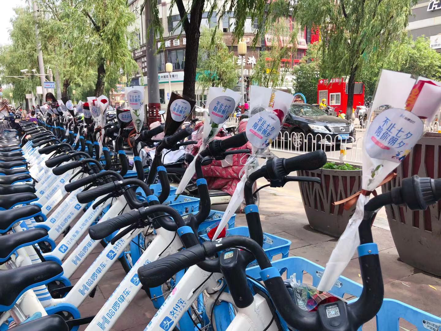 共享單車作為日常生活不可或缺的通勤工具,在太原有極高的使用率,已經(jīng)成為市民出行生活的一部分。選一輛最浪漫的玫瑰表白車,把浪漫七夕傳遍大街小巷。