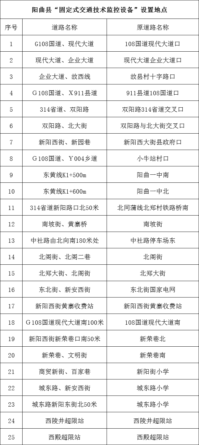 8月16日,陽曲縣公安局交通警察大隊對已啟用的“固定式交通技術(shù)監(jiān)控設(shè)備”向社會進行集中重新公布。