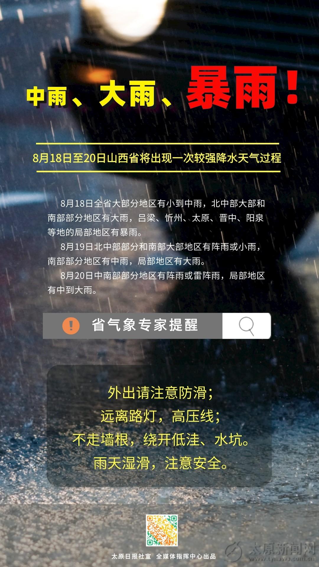 【海報】氣象專家提醒8月18日至20日山西省將出現一次強降雨天氣