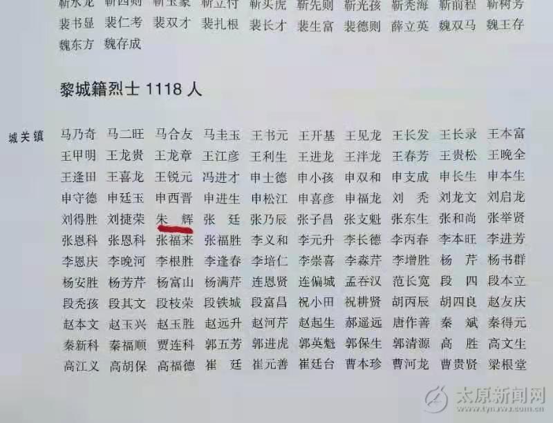 尤其令人欣喜的是,楊宏偉還傳來了《十二軍史話:二野勁旅》中記載朱輝事跡的書頁(yè)截圖,以及通過其他資料查到的“黎城籍烈士”名單截圖。