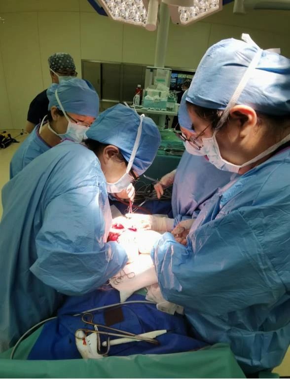 專家團隊密切配合、嫻熟操作,瘤體逐漸被分離。瘤體滋養血管極其豐富,手術稍有不慎,極易觸碰腹膜后大血管及輸尿管,就會引發致命的大出血,這無疑是對醫生技術的一次極大挑戰。經過3個小時的浴血奮戰和同心協力,專家團隊克服了因瘤體巨大、粘連嚴重、手術視野受局限、大出血風險高等一系列的困難,最終成功摘除了這個巨大的子宮肌瘤,腹腔及盆腔各臟器無一損傷。