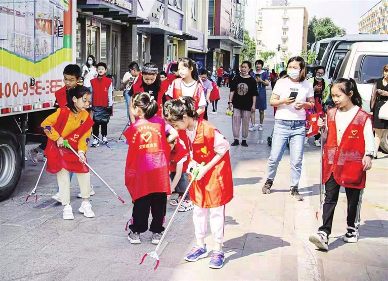 志愿服務結束,在回社區的路上,11歲的劉玥涵告訴社區網格員:“阿姨,我回家后要告訴爸爸,再也不要抽煙了,到處是煙頭,煩人。”“就是,我也要告訴爸爸。環衛工人太辛苦了。”9歲的張梓渲附和。