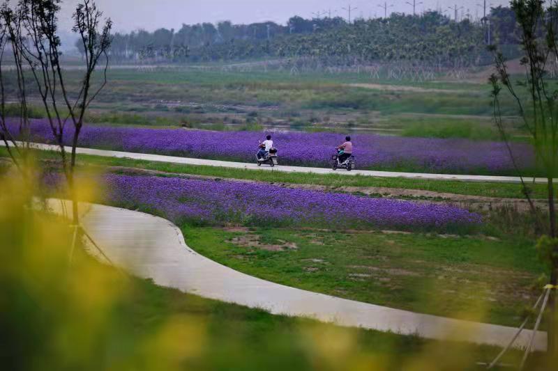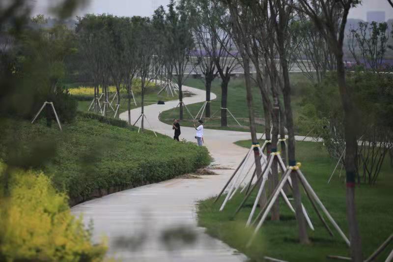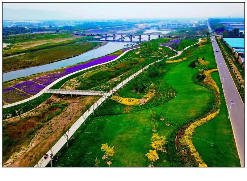 此外,綠化河堤行道5.6千米,平整河堤外坡面4萬平米、自然式駁岸3080平米,植草格磚及土工格室2.65萬平米,栽植地被植物1800平米,園路三七灰土完成2.35萬平米,草亭基礎澆筑完成17個,安裝噴灌管線2.8千米。