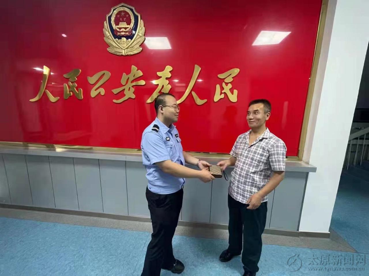 9月13日晚,迎澤派出所接到群眾報警稱在體育館門口民生銀行撿到一個錢包,無法找到失主,請求民警幫助尋找失主。值班民警對王先生拾金不昧的精神表示贊揚,同時對錢包內財物進行查看,發(fā)現包內有身份證、購物卡、社保卡等。民警剛打算對身份證信息查詢,發(fā)現錢包內有一張身份證領條,通過電話馬上聯系到了錢包的主人。失主很快來到了迎澤派出所,民警經核實無誤后,將錢包還給了失主。