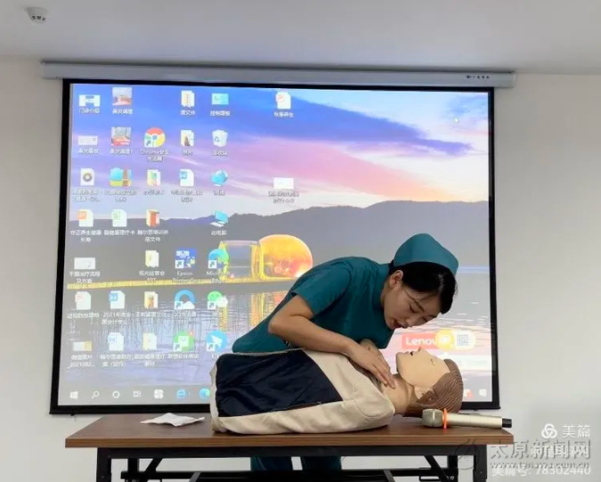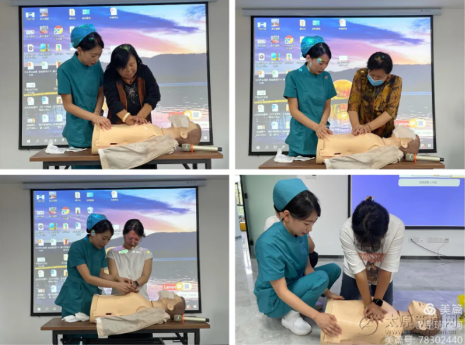 太原市人民醫(yī)院護士為大家演示心肺復(fù)蘇的流程和做法,大家踴躍參與其中,并進行實際操作。
