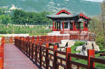 西山疊翠景區(qū)最醒目的便是疊翠軒,周邊小橋流水、亭臺樓閣,仿若江南。景區(qū)內(nèi),每走出不多遠便可見一“路標”,指示牌上分別標記著翰墨苑、丹亭、福源閣、慈萱亭等7處文化景觀。新建的兩處景觀橋正在進行最后的接縫收尾,橋的立柱頗有氣勢,讓人想到了盤旋在天龍山路上的“網(wǎng)紅橋”。而跨越汾河兩岸的橋身,流暢旋轉(zhuǎn)的線條,又讓人看到了躋汾橋的影子。與其他橋梁不同的是,這兩座景觀橋,不僅是步行橋,還是自行車橋,跨河兩岸,往來便捷。