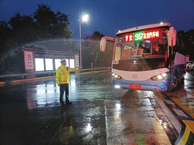 9月18日11時35分,因降雨導致部分路面積水嚴重,四大隊開始管制七座及七座以上客車、危化品運輸車駛入太古高速公路,同時通知公交公司相關負責人,暫停917路售票,告知乘客選擇其他出行方式。由于18日為中秋小長假前的最后一個工作日,不斷有不知情的乘客到達下元公交站,在雨中等候發車。至下午4時許,下元917路始發站已滯留乘客200余人。