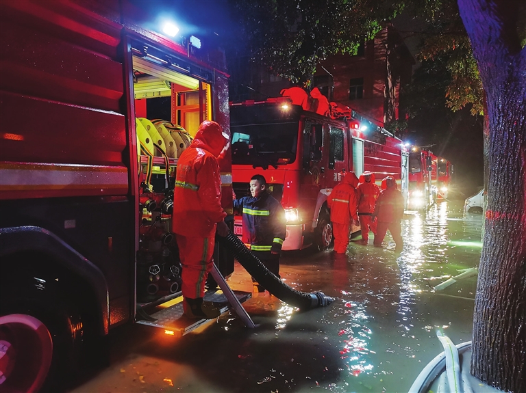 4日下午5時許,北營南路43號煤機社區,因連續降雨導致積水過深,急需救援。消防指揮中心接到報警后先后調集長風、營盤、學府等消防站共6輛消防車、45名指戰員趕赴現場處置。到場后發現,煤機社區1號樓、2號樓和8號樓附近積水最為嚴重,呈倒灌態勢,導致積水水位不斷上漲,居民出行困難。為盡快降低積水水位,確保居民正常生活少受影響,現場共4輛16噸水罐消防車參與排澇作業,另有2臺手抬機動泵,1臺浮挺泵參與排澇作業,救援人員還用橡皮艇等協助居民進出。直至5日8時,消防救援人員在現場已堅守15個小時。