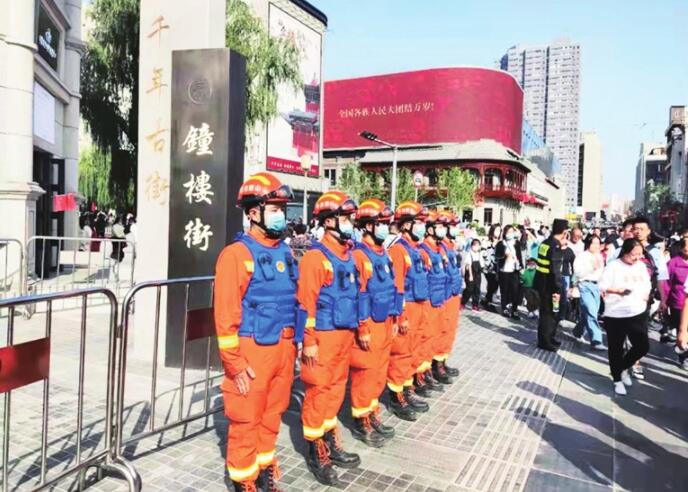 國慶期間的鐘樓街,放眼望去,滿目皆是中國紅。鐘樓上,主街旁,五星紅旗成為最亮麗的景色。背景音樂飄來,是《我和我的祖國》,溫暖熱烈,比平常聽著更有感覺。
