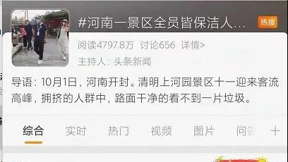 微博話題#河南一景區全員皆保潔人手垃圾夾#沖上熱搜,