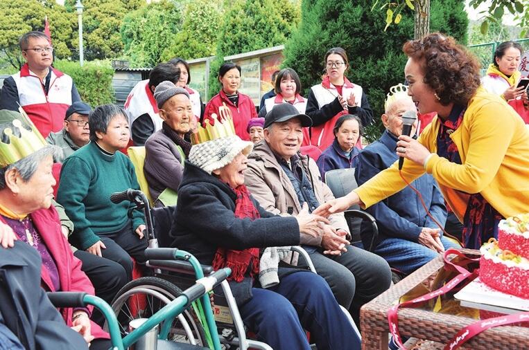 在充滿溫馨而熱烈氣氛中,婚齡超60年的三對夫婦率先上臺,工作人員為老人披上紅色圍巾,戴上生日帽,接受大家的祝福。在人們的強烈提議下,每對夫婦還來了個深情的擁抱。之后,分別是婚齡超55年和超50年的夫婦上臺。最后,老人們一起分享了社區(qū)為大家訂的甜蜜蛋糕,觀看了社區(qū)文藝愛好者的節(jié)目,品嘗了社區(qū)餐廳熱騰騰的餃子。