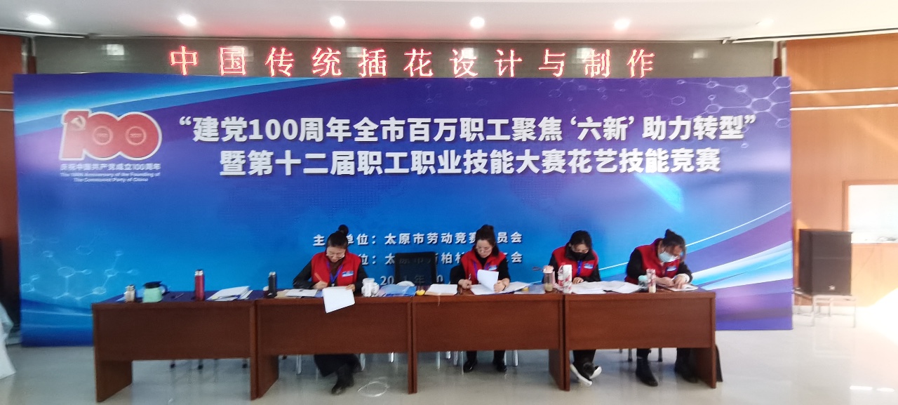 10月22日,“建黨100周年全市百萬職工聚焦‘六新’助力轉型”暨第十二屆職工職業技能大賽——花藝技能競賽在山西機械高級技工學校舉辦。活動由太原市勞動競賽委員會主辦,太原市萬柏林區總工會承辦。