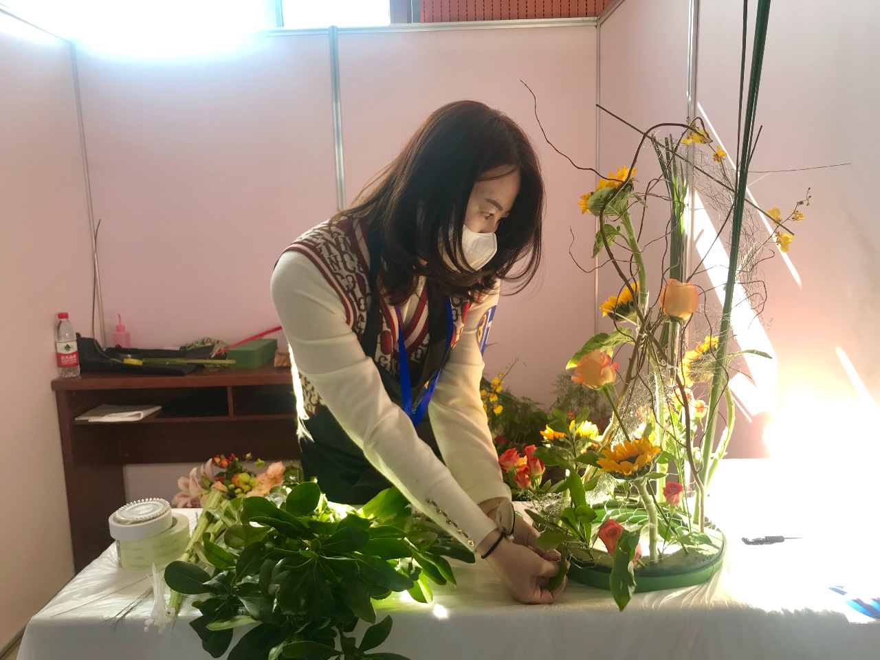 比賽現場,參賽選手用作品建造了一個花的世界,散發著陣陣花香。據悉,本次競賽項目分為理論知識考核和操作技能考核兩大模塊。其中,操作技能考核分現代花藝和中國傳統插花作品,圍繞“慶祝中國共產黨成立100周年——我們都是追夢人”“錦繡龍城”兩大主題,考評選手設計與制作技能水平,以及利用作品體現和傳播中華優秀傳統文化的能力。