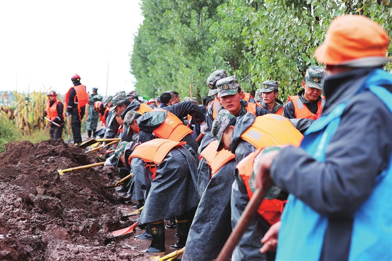 “八天,我們村扛了整整八天,要不是縣里及時(shí)救援,調(diào)配物資,組織隊(duì)伍,還有武警官兵沖鋒陷陣,恐怕就危險(xiǎn)了。”高花村支部書記高森疲憊的神情中抑制不住激動(dòng)的情緒。10月2日下午,汛情告急,村委會(huì)立即向村民發(fā)布信息。這是一場(chǎng)無(wú)需動(dòng)員的戰(zhàn)斗,人群密密麻麻站滿了堤岸,婦女們張著口袋裝沙包,男人們提著沙包沖向險(xiǎn)工險(xiǎn)段。
