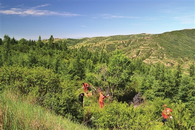 馬蘭鎮梅家溝,曾是寸草不生、滿目瘡痍的廢棄矸石山,但現在,草木豐茂,栽植了油松、刺槐等耐旱植物,并搭配黃櫨等彩色樹種,快速形成景色宜人、生態和諧的自然景觀。矸石山變了樣貌后,市民王改轉特意帶家人來這里轉悠,她說,原來刺鼻的矸石山變成了如今的綠色生態園,一眼望去,盡是花草樹木,讓人流連忘返。