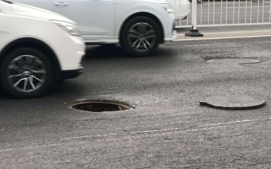 11月14日上午8時許,城管信息采集員金燕燕在小店區網格區域巡查時發現,龍城大街馬練營路口機動車道一處井蓋,在疾馳而過的車輛頻繁輾軋下,強大慣性沖擊將其彈飛甩出5米外,窨井“張嘴”導致路面出現空洞。由于事發地段臨近機場和高速公路口,來往車輛川流不息速度快,一旦避讓不及車輪陷入井中,給途經車輛人員隨時帶來危險。
