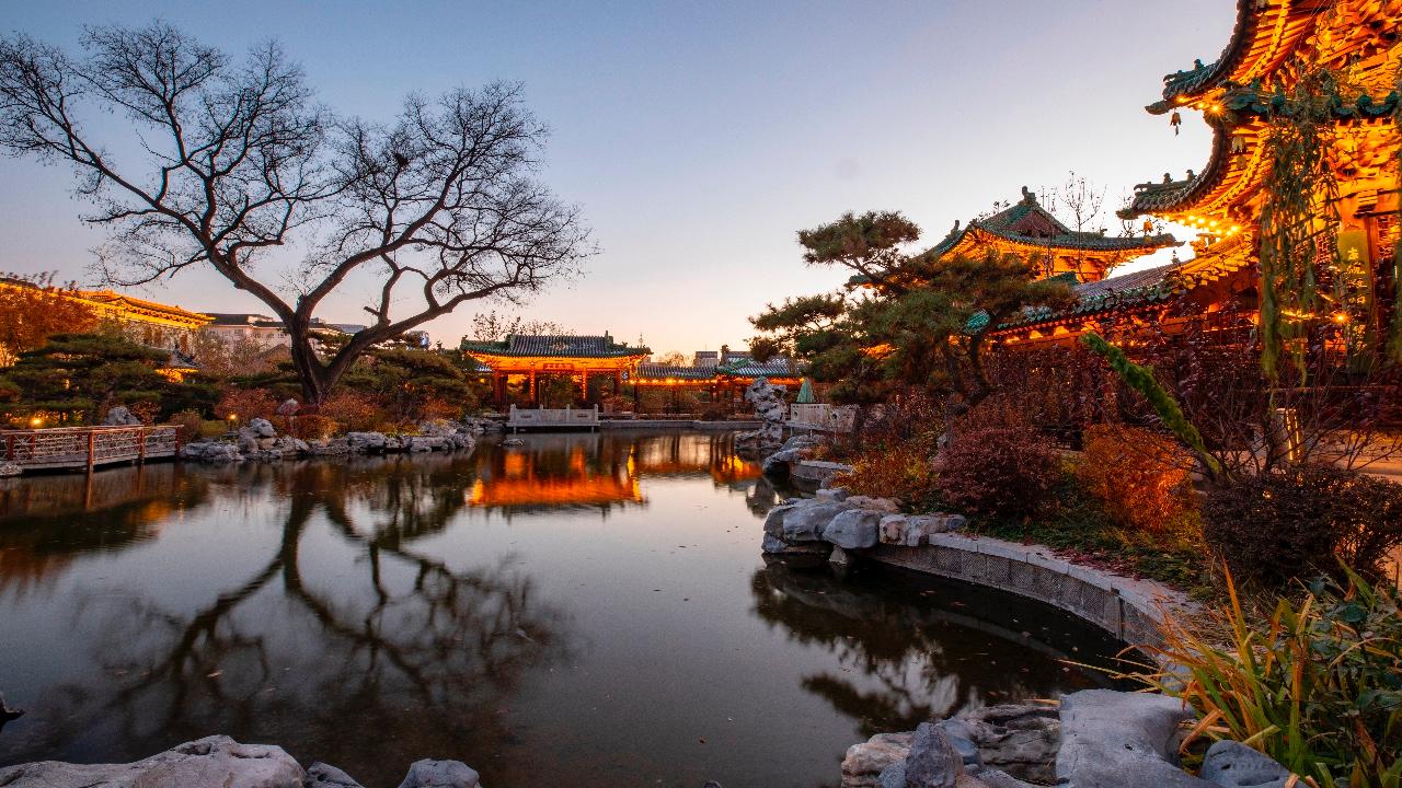 11月15日,夜幕降臨,華燈初上,璀璨的霓虹給晉商博物院亭臺樓宇,小橋流水間披上了金黃色的面紗,古樸典雅,莊嚴肅穆,漫步期間,宛若穿越千年……