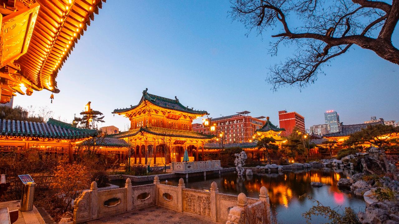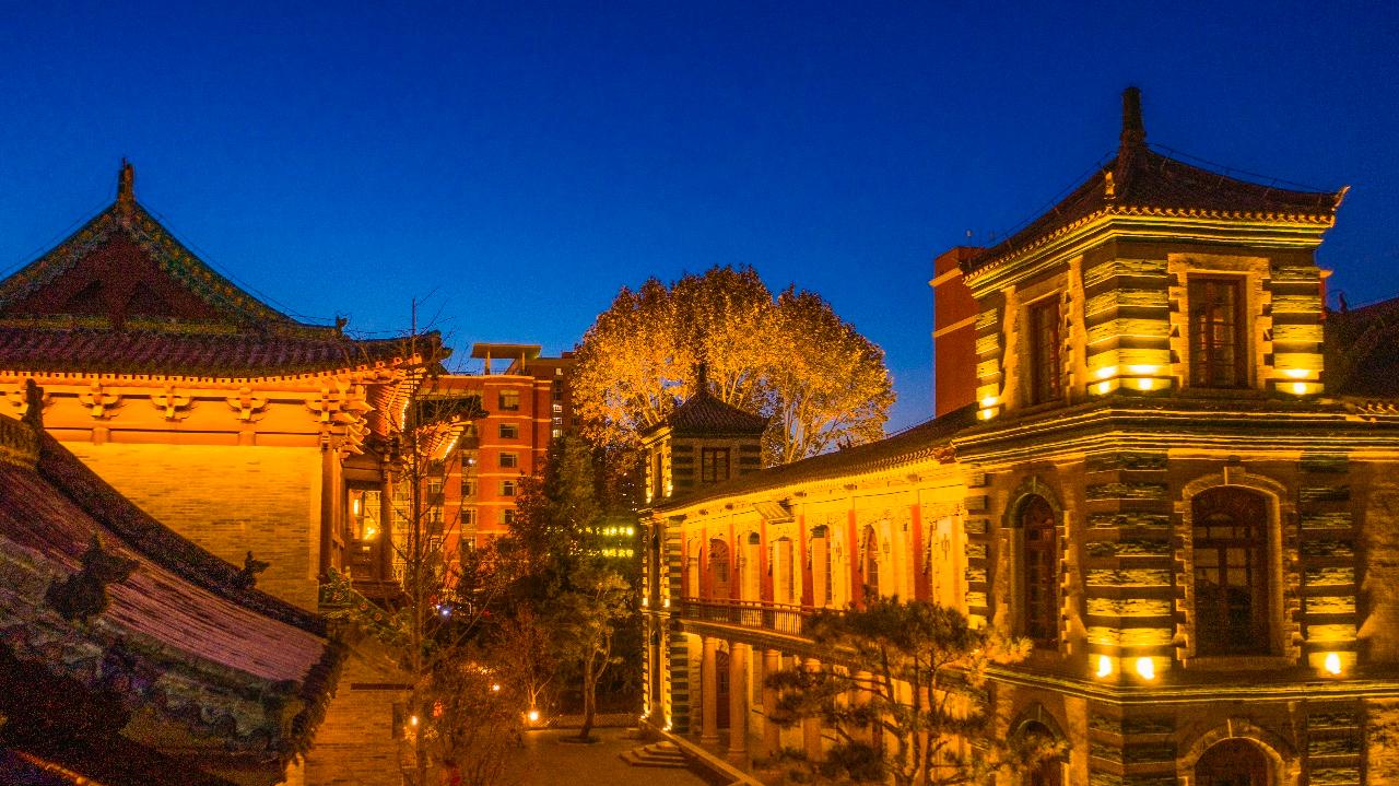 傍晚時分,梅山、自省堂、淵誼堂……流光溢彩,美輪美奐。皎潔的月光,璀璨的燈光灑落在古樸蒼翠,婆娑倒影之中,靜謐而肅穆的氛圍成為夜晚來這里的一種情懷。梅山,督軍府、山西省政府舊址已經成為太原人的城市記憶和不忘情節。如今,晉商博物院已成為太原的一張靚麗名片,迎接八方來客。