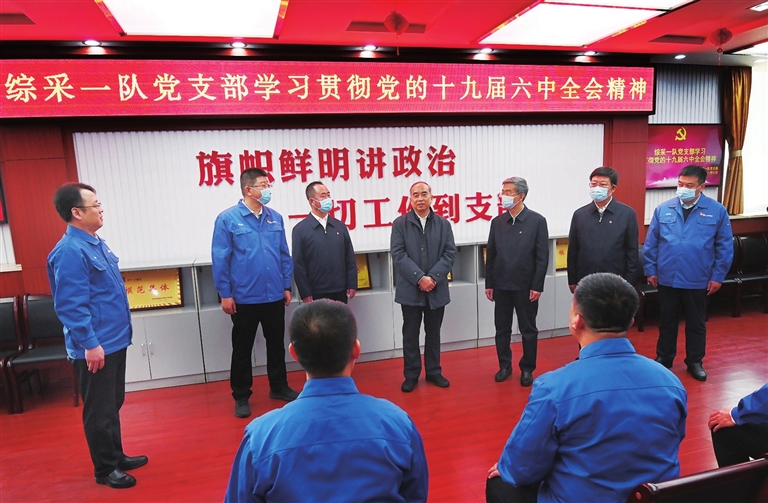 在山西焦煤集團(tuán),林武聽取企業(yè)學(xué)習(xí)貫徹黨的十九屆六中全會(huì)及省第十二次黨代表大會(huì)精神情況匯報(bào),對(duì)焦煤集團(tuán)改革發(fā)展的思路舉措、能源保供的責(zé)任擔(dān)當(dāng)給予肯定,勉勵(lì)企業(yè)把準(zhǔn)方向,步步為營(yíng),穩(wěn)扎穩(wěn)打,一年一個(gè)臺(tái)階向著一流企業(yè)邁進(jìn)。他指出,國(guó)有企業(yè)是山西經(jīng)濟(jì)高質(zhì)量發(fā)展的中流砥柱,堅(jiān)定不移聽黨話、矢志不渝跟黨走是企業(yè)發(fā)展的根本保證。要以黨的十九屆六中全會(huì)精神為指引,切實(shí)擔(dān)負(fù)起國(guó)有資產(chǎn)經(jīng)營(yíng)者、管理者、看護(hù)者職責(zé),聚焦邁過“生存線”、達(dá)到“發(fā)展線”,在深化國(guó)企改革中加快“趕考”“補(bǔ)考”,強(qiáng)化成本管控和精益管理,實(shí)行分類核算和分類考核,培育塑造優(yōu)秀企業(yè)文化,持續(xù)增強(qiáng)核心競(jìng)爭(zhēng)力,為全方位推動(dòng)高質(zhì)量發(fā)展多做貢獻(xiàn)。西銘礦是焦煤集團(tuán)一座擁有60多年歷史的現(xiàn)代化礦井,林武來到生產(chǎn)調(diào)度應(yīng)急救援指揮中心,了解安全生產(chǎn)運(yùn)行情況,通過視頻電話問候井下礦工,強(qiáng)調(diào)要把安全生產(chǎn)責(zé)任落實(shí)到基層、落實(shí)到班組、落實(shí)到每一名礦工。隨后,林武走進(jìn)正在開展黨支部集體學(xué)習(xí)的綜采一隊(duì)黨員中間,強(qiáng)調(diào)要充分發(fā)揮基層黨組織戰(zhàn)斗堡壘和黨員先鋒模范作用,推動(dòng)黨的十九屆六中全會(huì)精神進(jìn)廠礦、進(jìn)車間、進(jìn)班組。沿著煤礦安全文化長(zhǎng)廊,林武詳細(xì)了解安全生產(chǎn)教育、疫情防控、關(guān)愛職工身心健康等情況,看望慰問剛剛升井的28名夜班礦工,與大家一一親切握手。他動(dòng)情地說,煤礦工人是國(guó)家現(xiàn)代化建設(shè)的功臣,要用心用情關(guān)心礦工,結(jié)合深入開展“我為群眾辦實(shí)事”實(shí)踐活動(dòng),幫助解決實(shí)際困難,讓大家安心生產(chǎn)幸福生活。