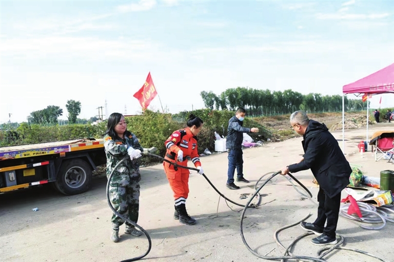 抵達受災最嚴重的大孝堡鎮北橋頭村,張慧娟驚呆了,現場受災情況遠比她想象的更嚴重。整個村莊都被淹沒,村民已經轉移到堤壩上。為了盡快幫村民回到家園,張慧娟和隊友們迅速進入工作狀態。他們找到水位最低處安裝了發電機和抽水泵,開始現場抽水。整整五天五夜,張慧娟與隊友們輪流值守現場。5天后,積水漸漸被抽干,地面露出來了,村民的牲畜也被他們救出。