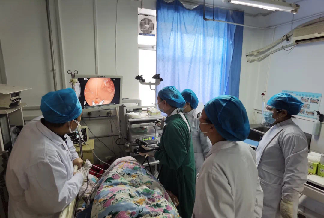骨科住院患者、81歲高齡老人王奶奶因骨折術后突發急性消化道出血,血壓下降,經骨科全體醫護人員經過補液、抑酸及緊急配血輸血治療后,生命體征逐漸平穩,邀請消化科專家會診后,為進一步明確患者出血灶情況,又緊急邀請山西省人民醫院消化內鏡專家張晶主任會診,得知該患者需盡快行內鏡下檢查時,市二院呼吸消化科負責人劉夢華帶領內鏡團隊景艷紅副主任醫師、周紅艷護師、王鴻雁護師第一時間到達內鏡室做術前準備,并等待患者到來。