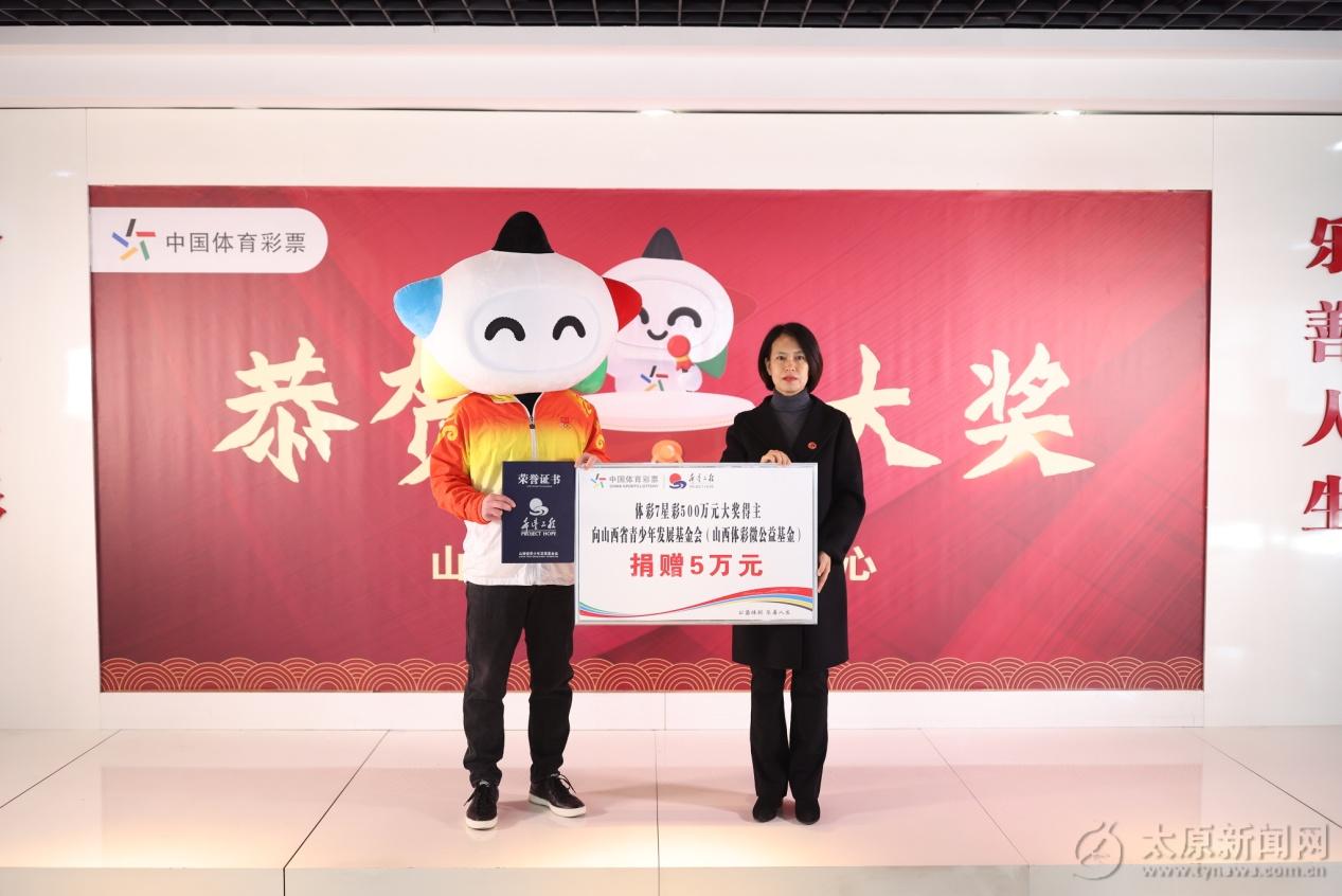 T先生表示,這次中獎號碼出自孩子的生日,T先生決定從獎金中拿出5萬元捐贈額給山西省青少年基金會,替孩子積德行善,幫助更多需要幫助的人。