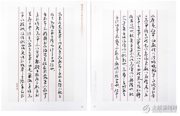 在保證作品藝術水準的前提下,趙國柱還特別注重藝術的載體形態,以此來實現內容與形式的完美統一。為此,趙國柱選定了古風淳厚的尺牘手札:宣紙,豎式,紅格,從右至左書寫,左下角的紅色“榮寶齋”字樣,無不向讀者傳達著它的高古和格調。在書法史上,尺牘手札在文人書法創作中歷來就有較高的位置。而這種載體形式又為很好地表現傳統文化中的經典散文,提供了最佳選擇。與其所表現的文化內涵相輔相成,相映成趣。