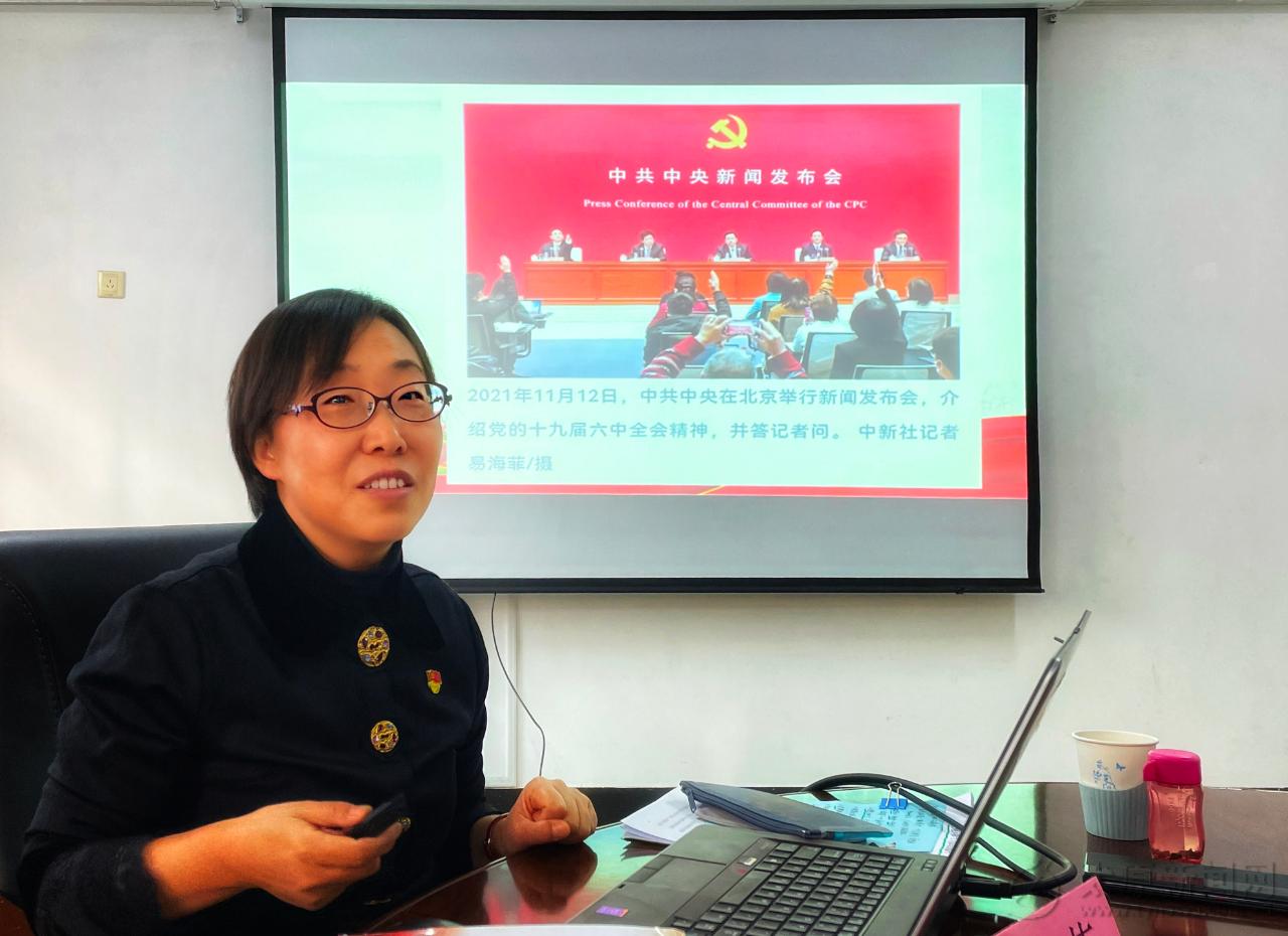 劉俊萍講師,畢業于太原師專中文系漢語言文學專業,曾任中文系學生會主席,現任市文聯離退休人員工作部長,山西省讀書援助協會副秘書長。她從深入解讀十九屆六中全會精神;準確把握十九屆六中全會《公報》;擔當新使命建功新時代這三個部分講述了,新征程上我們要始終如一堅持和捍衛“兩個確立”,堅決自覺做到“兩個維護”,從黨的百年奮斗歷程中汲取智慧和力量,堅定理想信念,堅守初心使命,接續奮斗,為全方位推動高質量發展,為全面再現“錦繡太原城”盛景展現新作為,貢獻新力量。