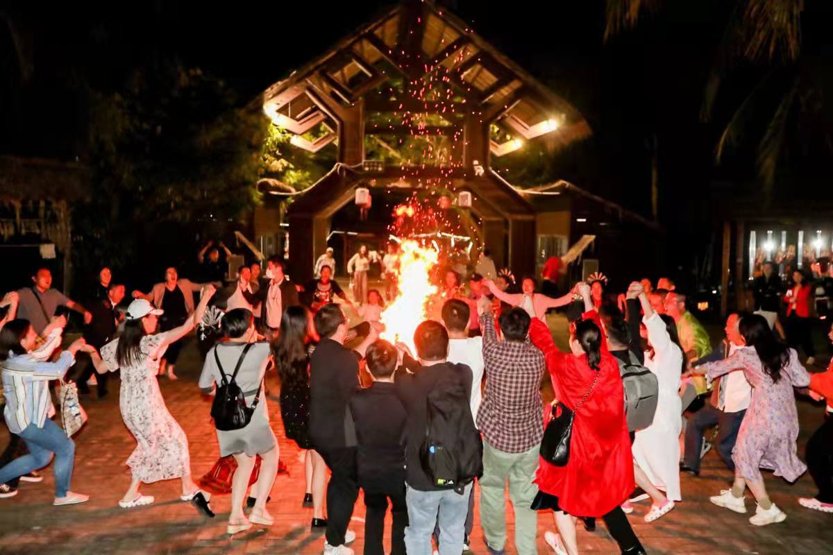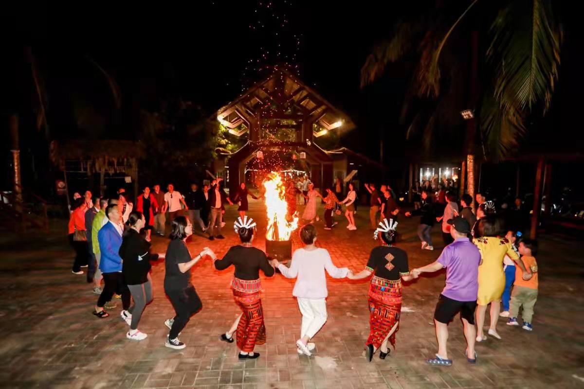 晚上7點,媒體采訪團齊聚餐廳舉行歡送晚宴“話離別”,現(xiàn)場沉浸在一片歡樂的氣氛中。采訪團成員品美食、賞黎族音樂,在舞臺上一展歌喉。篝火照亮了每個人的笑顏,晚宴熱鬧不已。歡送晚宴還特別設(shè)置了頒獎環(huán)節(jié),頒發(fā)了終極最佳發(fā)稿獎一、二、三等獎項。