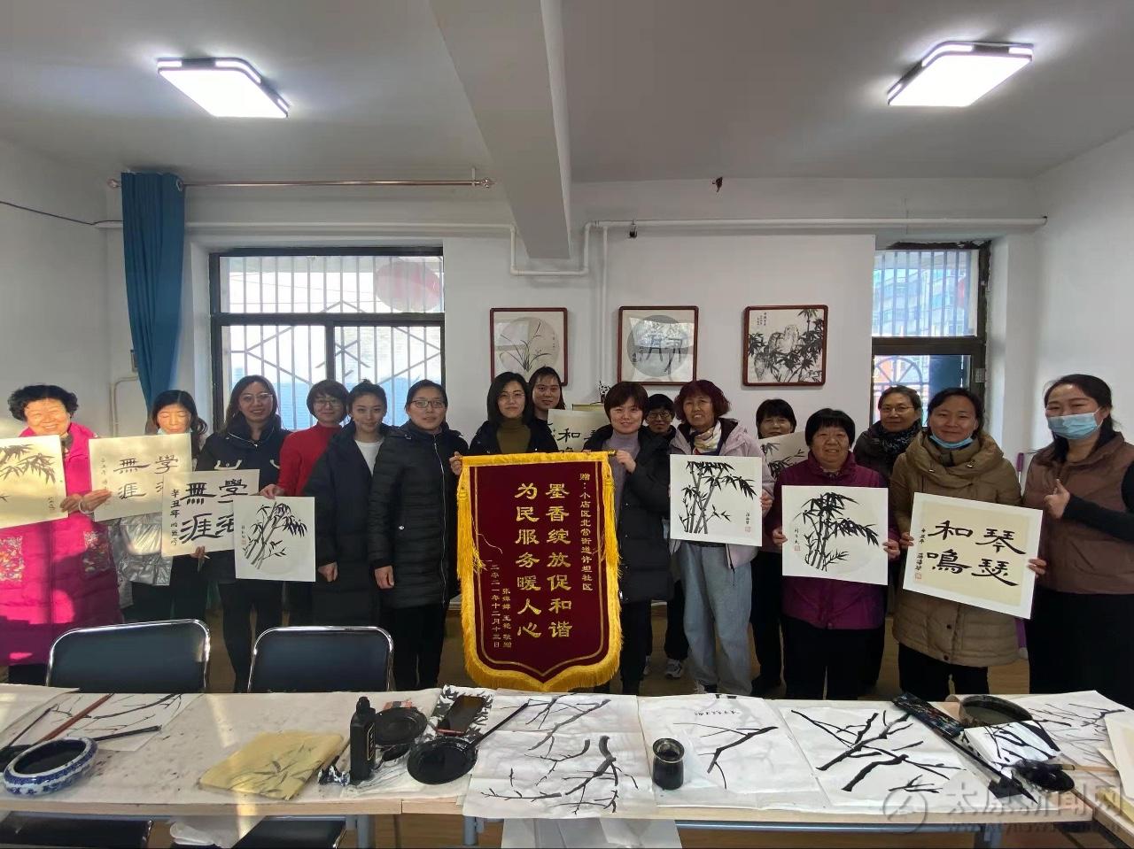這面錦旗來自本轄區小區居民及周邊社區書畫愛好者們,他們中年齡最大的年過七旬,最小的不過四五歲,既有在職的“上班族”“學生黨”,也有各行各業的退休人員。自今年10月21日書畫課堂開班以來,已累計培訓約200人次。