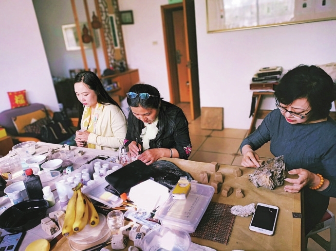 這里的陶印,彌散著悠悠古韻;這里的篆刻,折射著濃濃唐風;這里的扇面,抒發(fā)著傳統(tǒng)文化的拙樸率真……