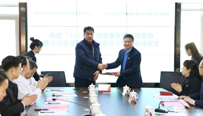 12月17日上午,中共山西中醫藥大學附屬醫院委員會與中共太原市萬柏林區委下元街道工作委員會共同構建“1+1+N”健康服務圈項目簽約暨下元街道“黨支部醫療健康服務站”啟動儀式在萬柏林區下元街道辦事處舉行。這是我市第一個與醫院聯合成立的黨支部醫療健康服務站。
