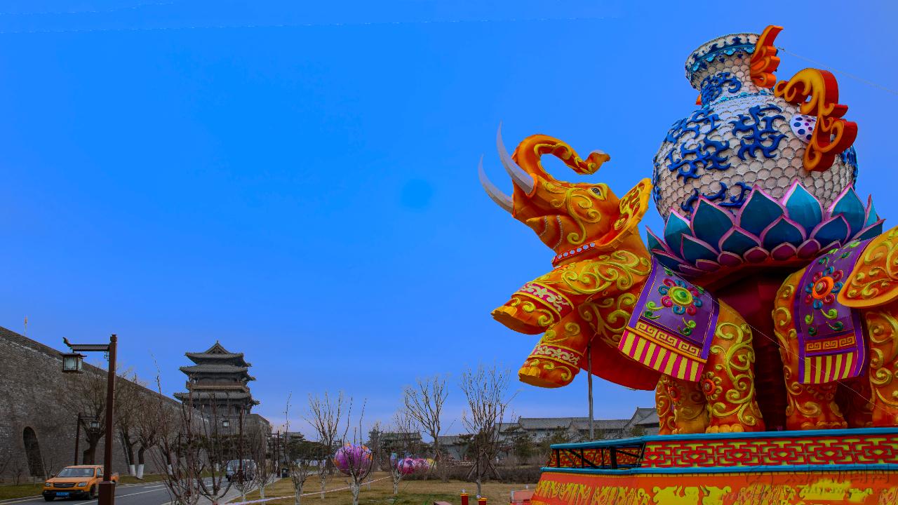 12月15日,太原古縣城“錦繡太原中國年”大型燈展開始布展。